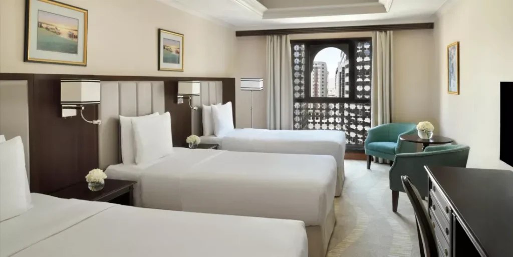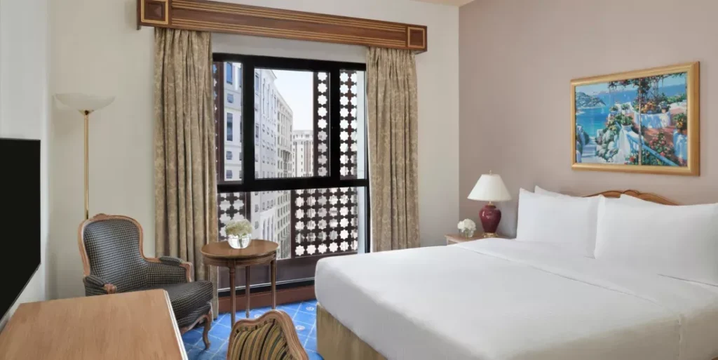 Fairmont Clock Tower—everyone recognises it. Hilton Suites and Swissotel, both just steps away. Pullman Zamzam, a steady choice. InterContinental Dar Al Tawhid—still one of the closest to Haram. A lot of these even have Kaaba-view rooms, though you’ll need to ask early because they go fast.