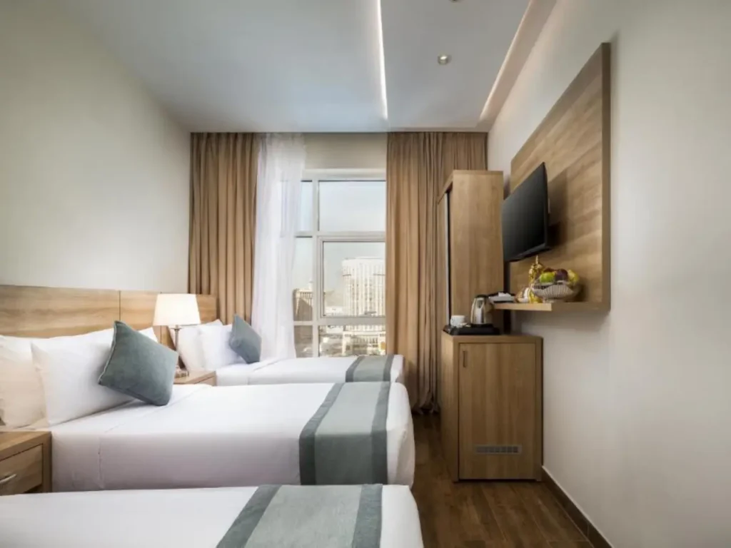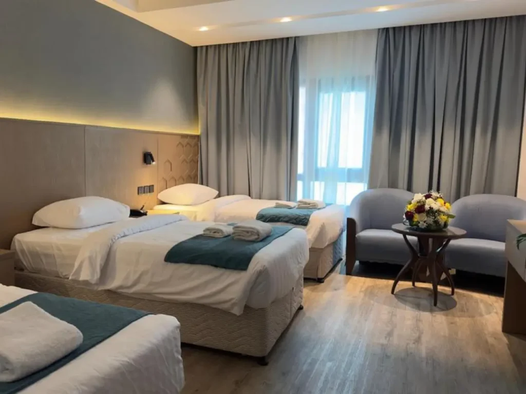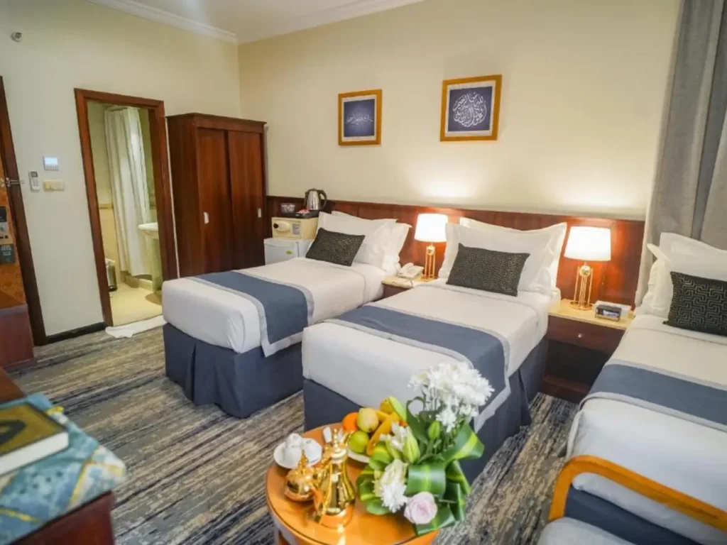 Practical and tidy. Wi-Fi, air conditioning, attached bathrooms, and a shuttle are available when walking is long. A good fit if you want value. See our 3 star Umrah packages.